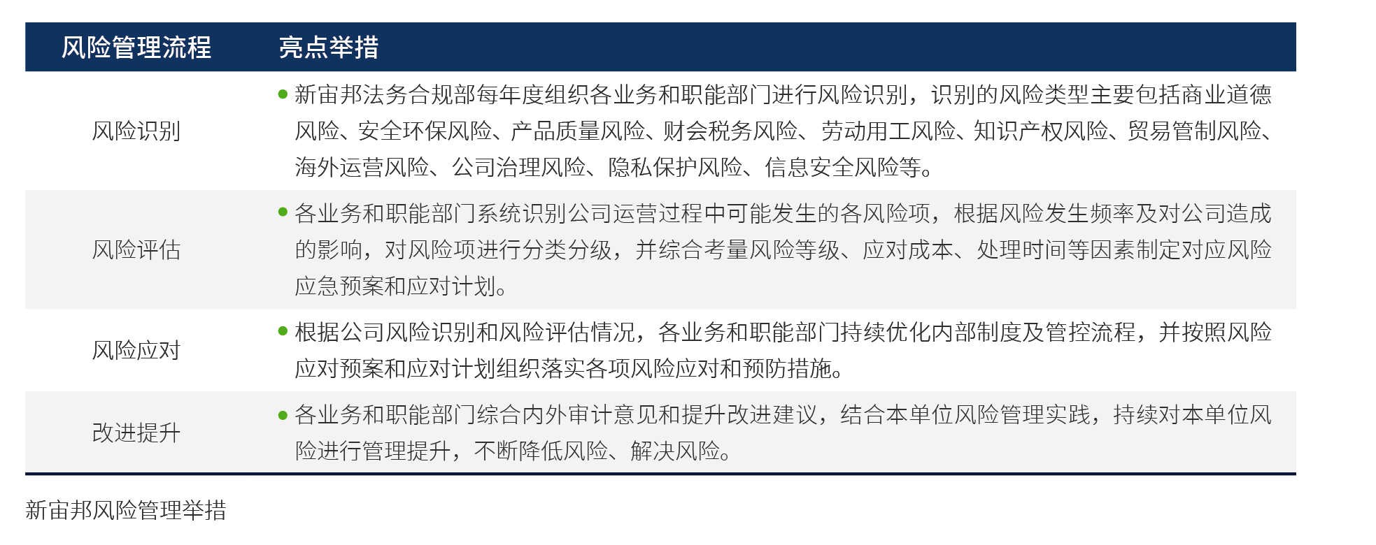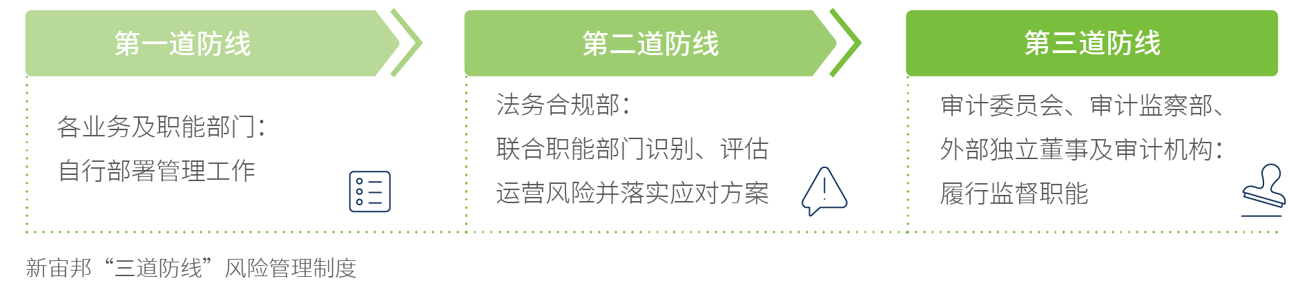 对内,由合规办部署合规风险管理制度宣贯、专项培训、管理经验交流等文化宣贯工作,持续向员工输出风险管理意识及应对策略,提升员工风险意识,确保合规风险制度和管理要求的执行成效。同时,由公司审计委员会统筹开展风险监督工作,公司独立董事积极参与公司治理及风险管控流程,提出风险提升改进建议,确保公司重大项目顺利开展。