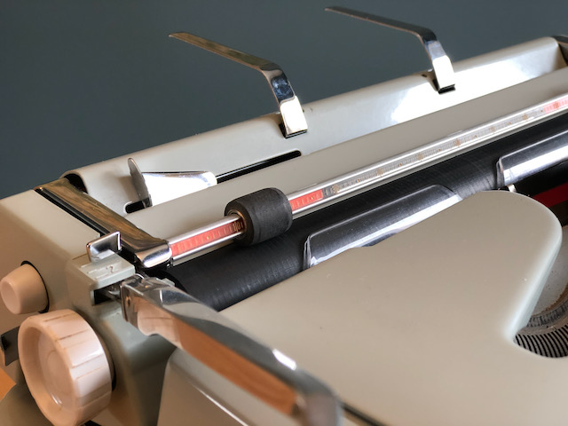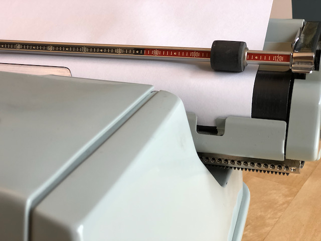 I’ve always struggled with knowing when I’m about to hit the end of a page. Especially when writing exactly One Typed Page! Wrap it up, amigo, you only got two lines left! Shoot for under, never over. To solve this problem, Hermes notched a couple openings on the lower part of carriage on the left and right sides. Through this gap, the bottom of the page comes into view a couple lines before the end. Olympia has the best solution for this with an adjustable page stop on the paper support, allowing the bottom margin to be set wherever. Either way, super useful!