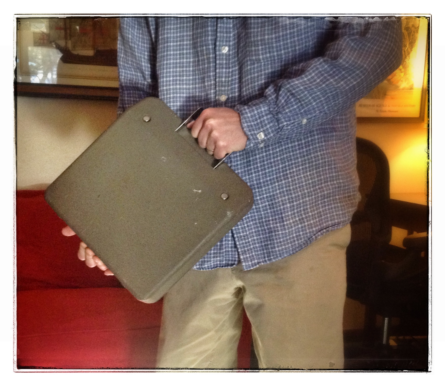 The model I used didn’t have a paper holder in the back, so the paper flopped over the back. But then again, this typewriter was meant to turn out short dispatches from far-flung places. Rolling paper into the platen sounds like clicking ammo into an M4 carbine magazine. Once you’re locked and loaded, it’d take a typhoon to rip the paper out.